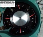 This job was a chore. Modifying the center disc was relatively easy, and I had a spare disc & button if I screwed up. Taking a very hard to find (and not re-pop'd) gauge assembly and drilling 8 holes in it was a test of faith & ability.