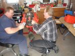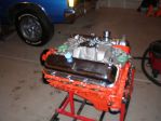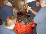 Media blasted misc. parts/intake manifold at John D.'s yesterday, then JD, Kevin (Dashboard), Craig (Pushrod, and Tom (Gearlube) came over today and we took it from a short block to a long block.
