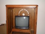 Solid golden oak cabinet that will fit a TV up to 32" (old school tube size). It's in perfect shape with no nicks or issues.