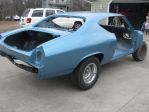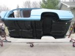 This morning's work. Got the main body all masked off, sanded the last coat with 600 on the firewall, dash, cowl, rear package tray and tail panel. Shot it all with satin epoxy and removed some of the masking. Might take a run at the headliner tonight.