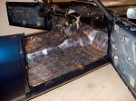 The body was very solid. The rear fender wells and some small holes in the rear of the front fenders were the only parts of the car that needed repaired. The floor, trunk floor, trunk lid, doors firewall, etc. were all fine. There is the 'usual' surface fill for straightening purpose and you can see in the one pic.