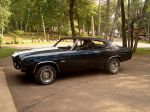 Car is a 402, 4 speed, 12 bolt posi with 3:31.  It was originally Placer Gold, black vinyl top, with a black interior.  It is now Midnight Blue Matallic.  The original motor blew-up many years ago.  But, it came with a year/car matching 402.  Engine has been completely rebuilt and already fired.