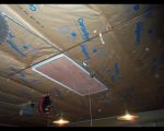 Of all the miserable tasks that must be done during a remodel project stuffing insulation is at the top of the list. I’ll bet you’re happy to have that one behind you. How are you going to deal with your copper airline and the electrical conduit/wiring, will it go above or below the steel ceiling?