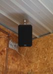 I used a few "leftovers/truck-stock" camera swivel mounts and mounted my Boston HD-5's to the ceiling (I'll run proper wiring later, when I do the walls), and we made a serious sort & toss-donate session before bringing stuff back to the attic. Goodwill got a lot of stuff.