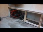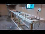 Today's project was the workbench on the west wall. It's about 90% complete. The "plan" is to cut holes in the top, and flush/surface mount the blast cabinet & parts washer into the benchtop (you can see the "saddles" that the parts washer tank will rest into).