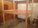 4x4 posts with 2x8s around the perimeter. Those are cross-bolted both ways. The long sides are also inset into the 4x4s for added strength. Under the bed, there are 2x4s for support and rigidity. Those are inset into the 2x8s to maximize space. Her dresser needs to fit underneath, her box spring and mattress must fit up top along with her being able to sit upright on top.