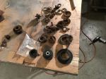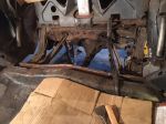 Also started the process of replacing the frame mount rubber bushings. After weeks of soaking with liquid wrench and PB Blaster, drilled 1/8' holes to access the cage nuts, the first 3 still broke off with out a lot of pressure. the 7/16" bolts snapped in areas where they were mote like 5/16th. will likely have to open up all of them from the top and replace the cage AY. Good news is this means thet progress is being made. Mitch's Sawzall attack under Andrews car was an inspiration to dig in and just do what it takes.