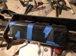4. Apply the JBW into the cracks and under where the reinforcements will be going, clamp in place