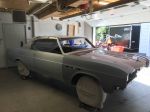 Things are happening here, slowly, but there happening. Finally starting to put some panels is primer sealer. I installed doors, fenders and set the hood in place just to check body lines and panel gaps. All gaps were at 3/16” +or- a smigin with the exception of the drivers door, it had. 5/16 gap where it meets the rocker panel. Somewhere in the cars past demolition derby career the drivers door was replaced. I welded a 1/8 rod along the bottom and it fell right in. Then the fenders and doors came back off and I shot them with black 2k epoxy primer sealer. Still need to prime the rear of the car and the hood and trunk have not been touched yet.