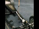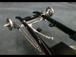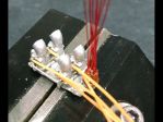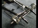 The brakelines are (of all things) .011" steel strings for an electric guitar. The rubber hoses to the wheels & axle are the insulation stripped off a 26ga. wire in an old VGA monitor cable. The brass fittings were turned from rod-stock, through drilled for the wire & locating pins, then filed to shape.