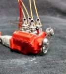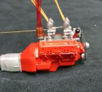 The drive pulleys are another story. The molded-in-one-piece crank, WP, Alternator, and belt just look clunky... always have, and are in every kit - you just can't make them look real (as supplied). So, why not make them real? A stick of 1/4" aluminum, and some time on the lathe and there's now actual pulleys on the devices. (How I made a scale "rubber" V-belt for them is another story).