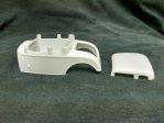 About 8/10th's of the way through, and when I only had about a 1/4 cup of paint left (paint left meaning the jar was dry... NO MORE to be had), I realized I'd forgotten the headlight buckets! These are chromed pieces as supplied, not body-color. So, I've got a loaded air-brush, everything else with 4+ coats on it, no paint left, and two more parts to spray! Well a panic stripping session on the buckets, a quick prep, then a paint session (before the air-brush totally gunks/clogs) and the headlight buckets got done too.