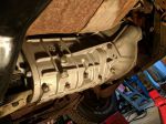 Finally get some time to work on the Chevelle and it has to be almost 100 degrees out, never fails. Well it was a good day nonetheles. Old transmission removed and test fitted the new one. Fits in the tunnel with about 3/8 clearance at the closest point. One of the shift linkage arms is rubbing but I am going to see if I can drop the shifter on its mount and that should resolve that issue. Had to slot the transmission mount and the crossmember mount holes to get the crossmember to fit in the last set of holes on the frame.