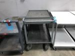 Lower cart with flat top is= 36x24, upper surface is 27" from floor