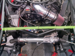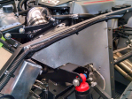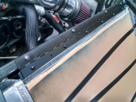 I chose to not use the FFR supplied SS flex hose for the radiator connections. I prefer the look of the molded rubber hoses, and a simple straight pipe section. #9365 is running a Coyote 5.0, and was shipped with the “newer” radiator that has an angled inlet and outlet.