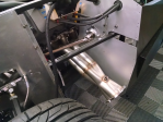 The bars were marked through the nearly inaccessible chassis mounting holes, the whole assembly pulled, the bars removed, drilled and tapped for mounting bolts, and back on the car.