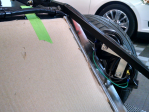I couldn't put it off any longer... that totally scary, delicately thin, HEAVY assembly had to go on the car. The big box has been sitting against the cabinets since day 1. I opened it to see if the glass was intact then sealed it up.