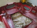The FFR holes again were spot-on. Just a tiny bit of sweetening with the Dremel for a perfect fit with even gap all around. Give careful consideration about the mounting holes for the trim rings & grommets! Think about access from underneath, and from above with a screwdriver. I did have to grind/file/sand down the male stub on the hoop (for the outrigger) a bit so the outrigger would just slide up and slip onto the stub (the alignment wasn't quite perfect. It was close enough to twist it up and on and a thump with a rubber mallet would seat it, but you'd never get it off again.