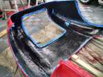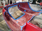FFR claims that there should be no more than +/- 40 hours of bodywork needed before paint (by a pro experienced in fiberglass). Off the truck the doors are bolted to the hinges, and the hood & trunk are taped in the holes. The movable panels are molded separately, and trimmed with a generous overage for final gapping (they fit the openings, but barely).
