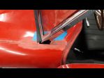 I scribed a line around the opening on the doors, staying on the tight side. I want to leave as much material as possible for the bodyman/painter, but still have functional, non-sticking doors. A few times on & off with the passenger side, a few minutes monkeying with the hinges, and it was on. A really nice fit all around.