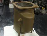 I was able to get the label off in one piece, but it wasn't in very good shape to begin with, so we'll probably use the new label.  Cleaned up the housing, ends and clutch assy. Taped off insides of the housing and ends to prevent damage an contamination, blasted, cleaned primed and painted.