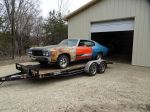 I bought this car about 4-5 years ago and had it stored at John T's place. He needed the room and with the new shed, I'm SUPPOSED to have room for all my "stuff", so it came home today.