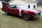 It isn’t a true 442, and the paint is not perfect, both of which have advantages:  the bank account isn’t completely drained, and she won’t hesitate to drive it.  It does have the Tick Tock tach, along with front and rear sway bars (the Malibu did not when I bought it).  It appears to have the Olds 12-bolt rear end, so it should hold up well.  It did leave TWO black streaks in the parking lot before we put her on the trailer!  It also has a 6-speaker stereo system.  Another plus for her!  We will be pulling the motor this winter to investigate a few leaks.  Other than that, Chris and I are busy spending her money (disc brakes, put AC back in, different/bigger rims, OD tranny, manifolds vs. headers?, so many possibilities)!