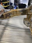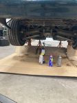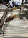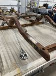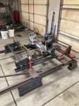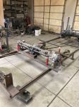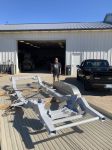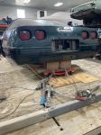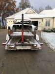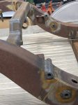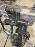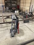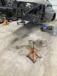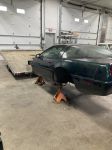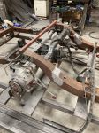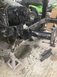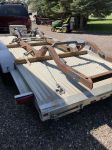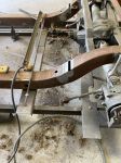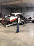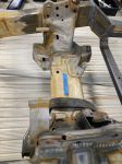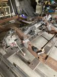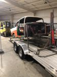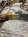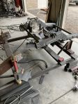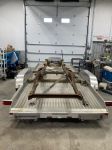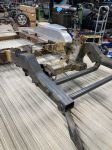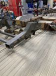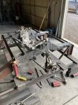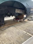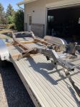Frame to be modified is on trailer, crossmember is going out for chemical stripping.