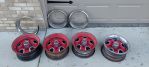Bought these to take the tires off and use them, so don't need the rims. They come with really nice trim rings and two of the bolt on center caps look like new while the other two caps have some fading in the logo area. They're stamped 'JJ".